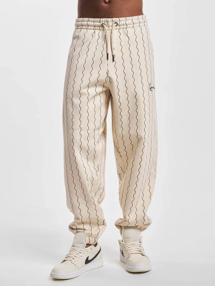 Pantaloni Karl Kani Small Signature Ziczac Pinstripe Relaxed Fit Off White/Black